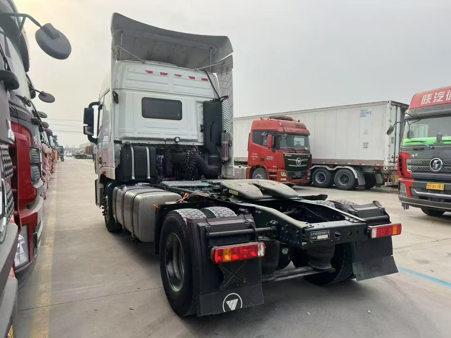梁山華通二手車市場內國六單驅氣囊橋小銀河520馬力,23年5月歐曼GTL小銀河,福康A動力520馬力,采埃孚自動擋,采埃孚液緩,全車輪胎9層新,全國提檔分期。買二手單驅氣囊橋牽引車就來梁山華通二手車交易市場。